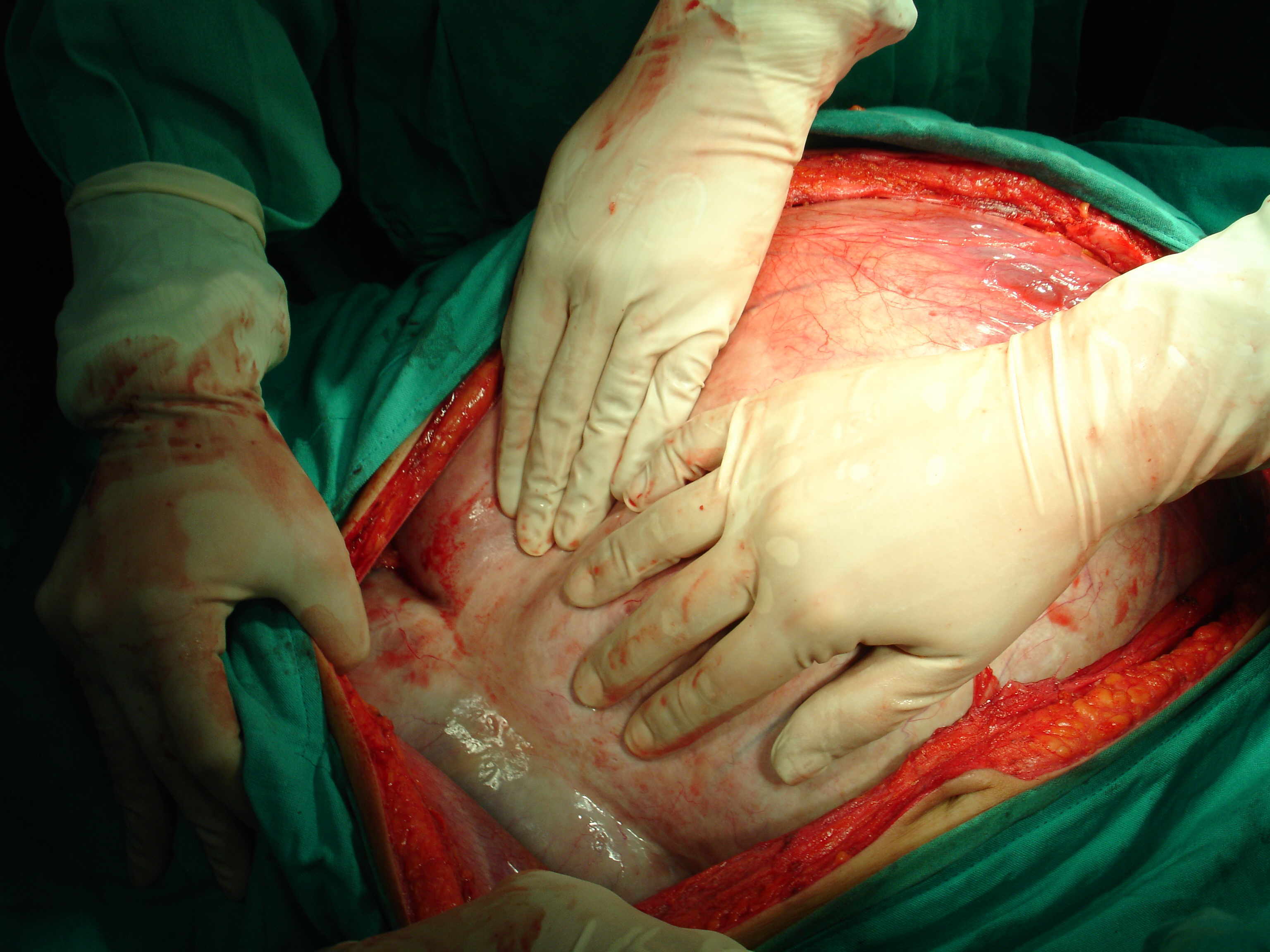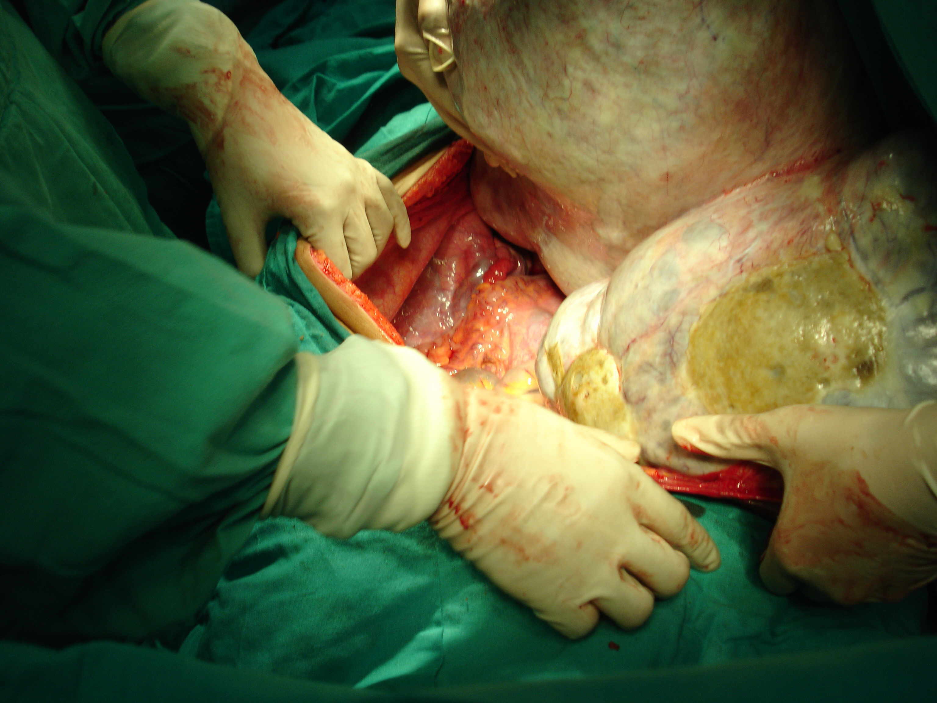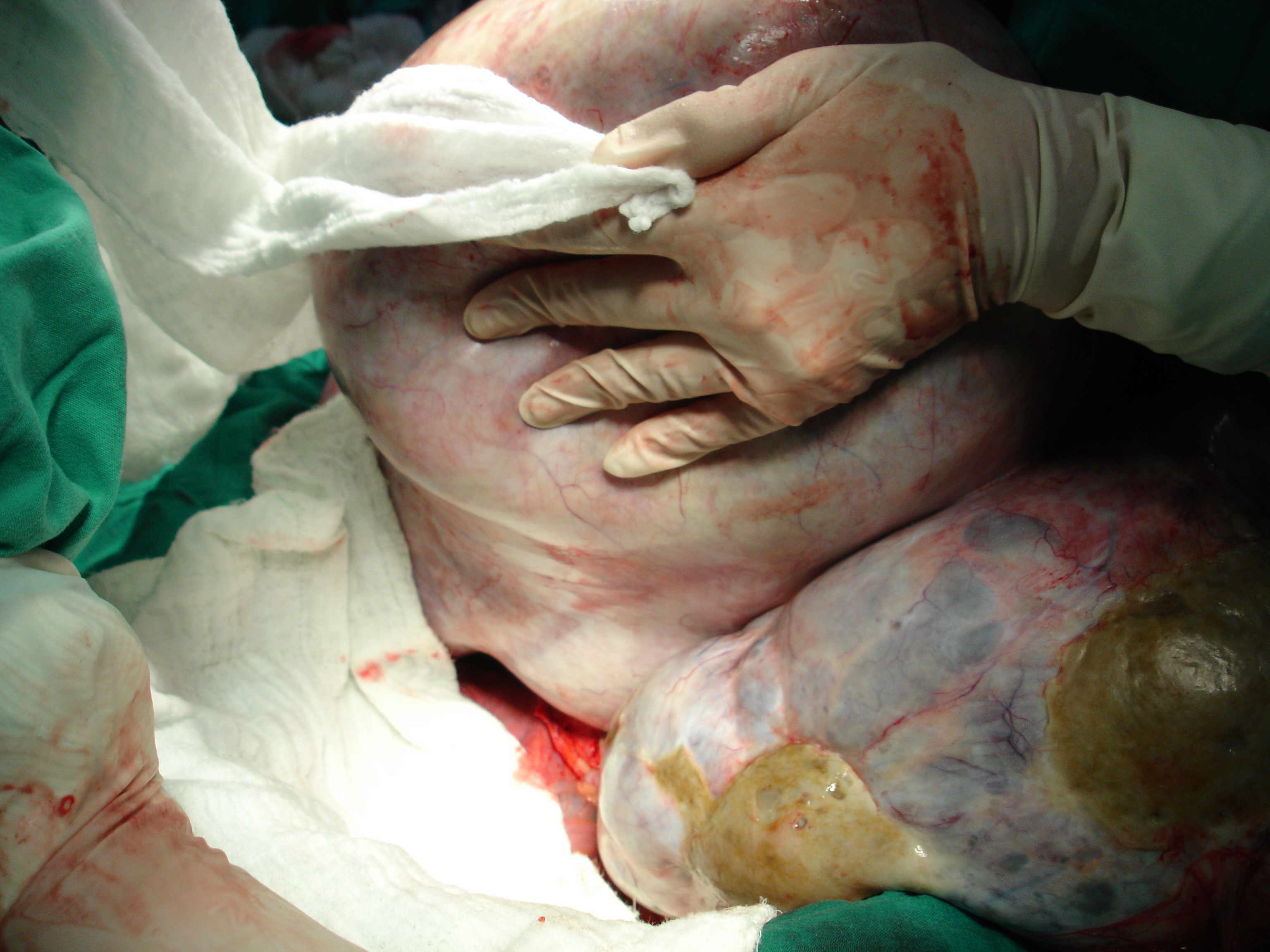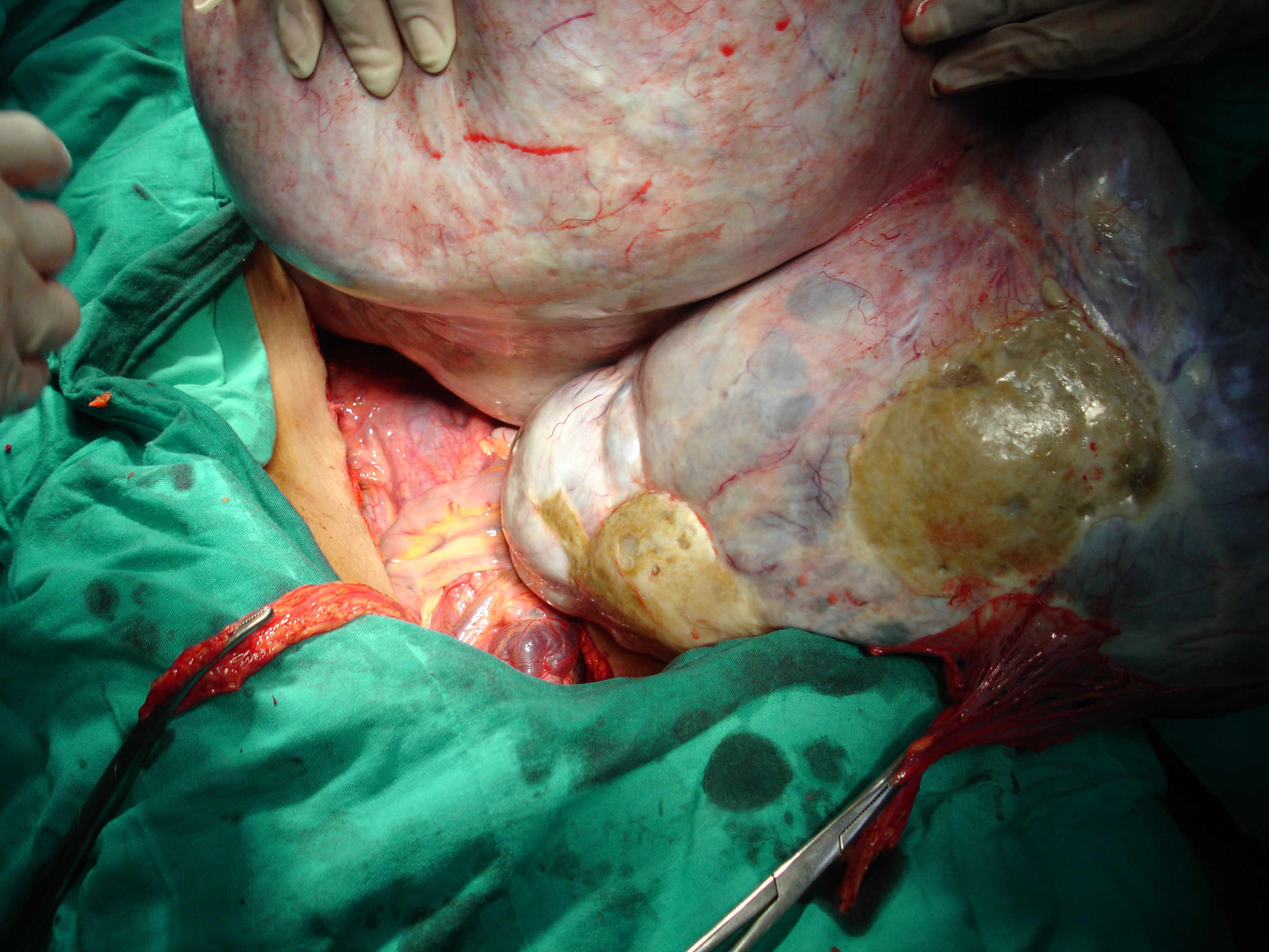 encompassed the whole abdomen., At laparotomy, a giant,